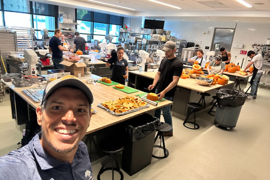“Dr. da Silva reached out and said, ‘If properly grown, we can anticipate an early pumpkin season and get you pumpkins by late summer instead of the fall, and if so, can you do something with them?’ and I said absolutely,” Kostic said. “So, this became a collaboration between horticulture, Human Sciences and New Realm–Auburn as Dr. Rodrigues was given access to work in the culinary laboratories to carve, roast and puree all the pumpkin.”